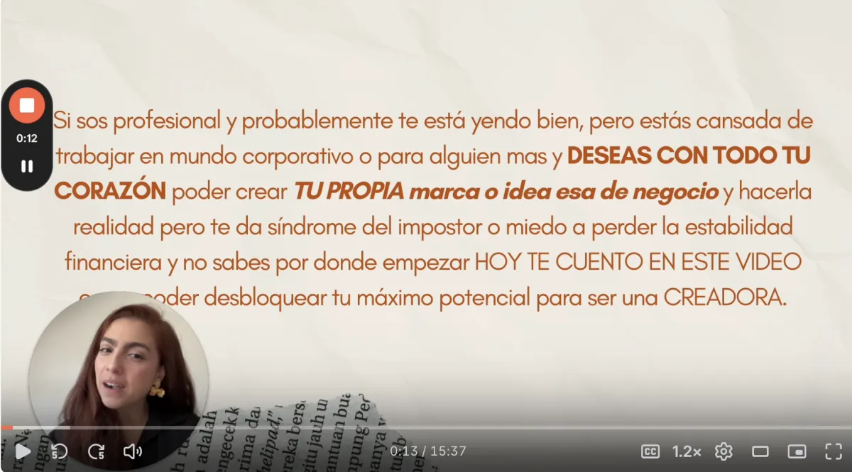 Fundadora de Creadoras Lumina, un programa que ha acompañado a mujeres profesionales de Latinoamérica a crear, desarrollar y lanzar su propio negocio desde el propósito, sin sacrificar su estabilidad financiera. Hoy liderando una comunidad de mujeres decididas a transformar su vida laboral con claridad, estructura y alma.